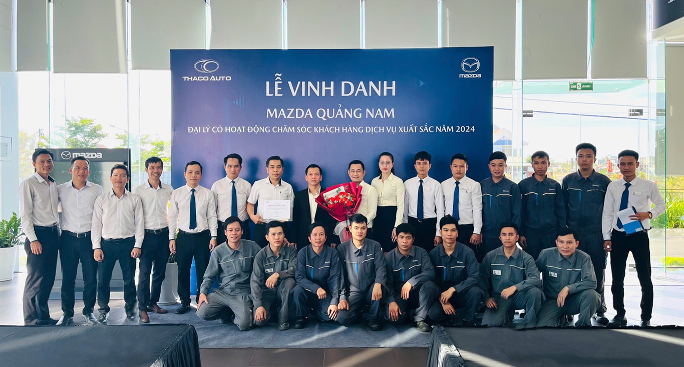 Ngày 22/5/2025, tại showroom Mazda Quảng Nam, THACO AUTO tổ chức Lễ vinh danh Mazda Quảng Nam là đại lý xuất sắc nhất toàn quốc trong công tác chăm sóc khách hàng dịch vụ năm 2024.