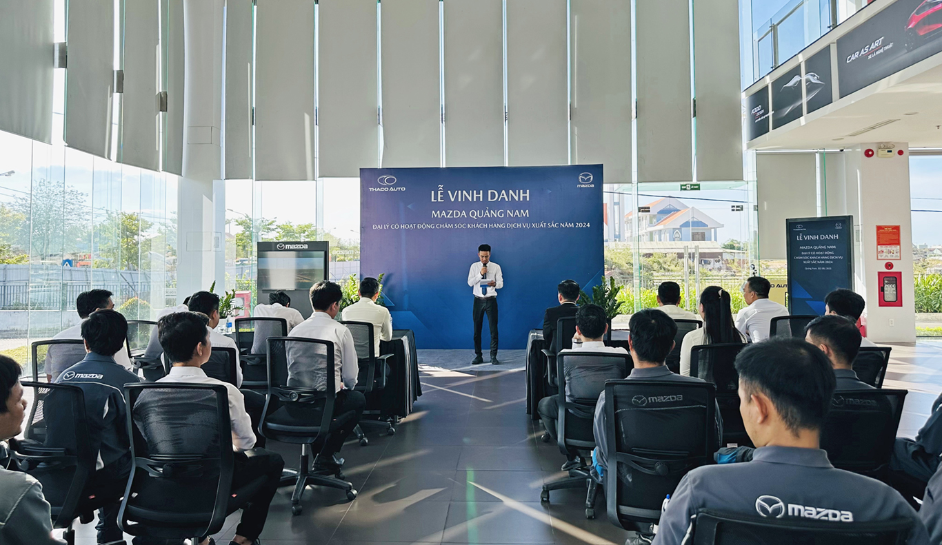 Buổi lễ vinh dự chào đón sự hiện diện của ông Văn Công Minh Khoa - Tổng Giám đốc THACO AUTO Đà Nẵng và toàn thể cán bộ, nhân viên Mazda Quảng Nam. Sự kiện không chỉ là dịp tôn vinh những nỗ lực nổi bật trong hoạt động dịch vụ hậu mãi, mà còn là lời cam kết tiếp tục đặt khách hàng làm trọng tâm trong mọi hoạt động kinh doanh.