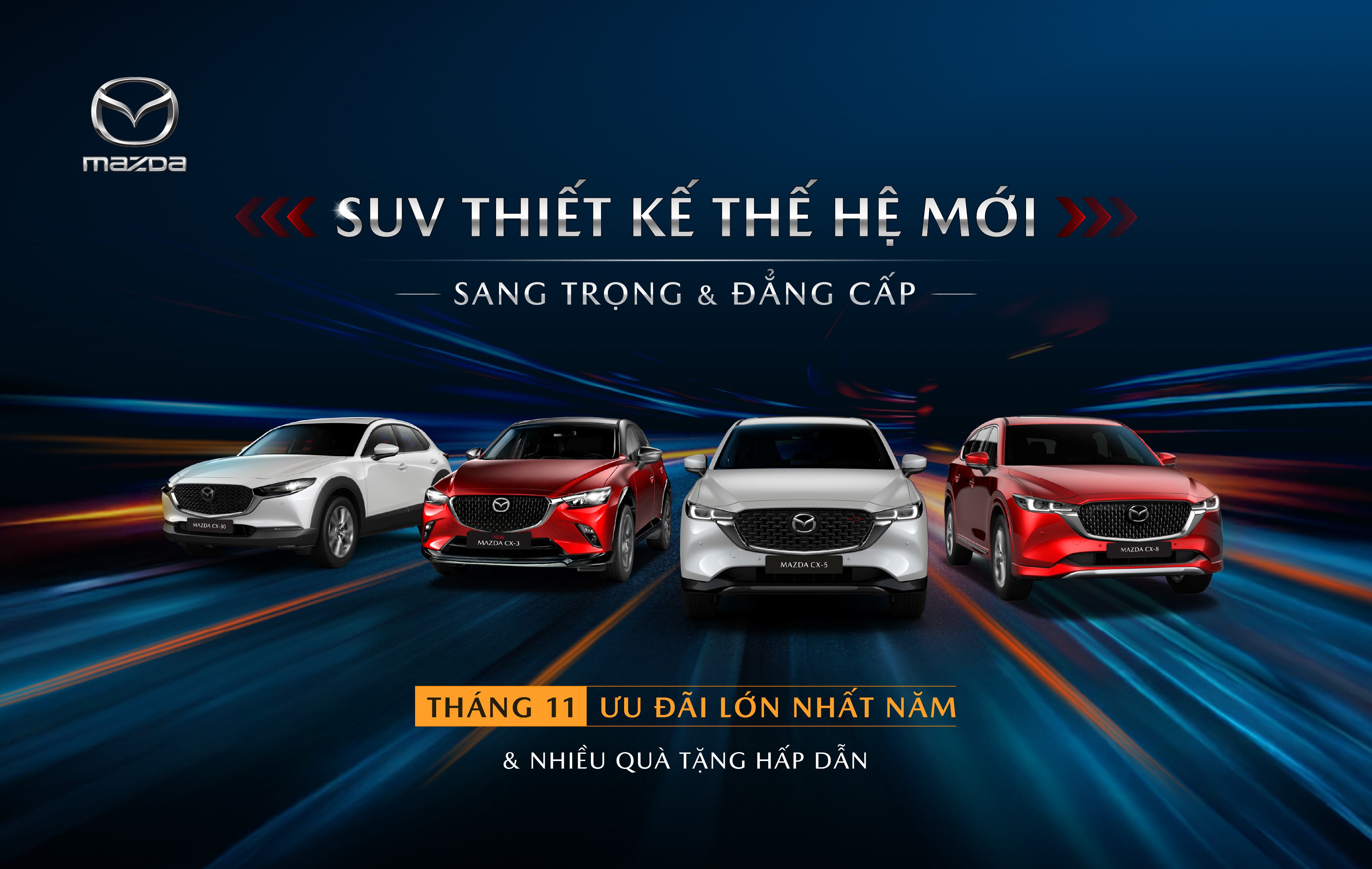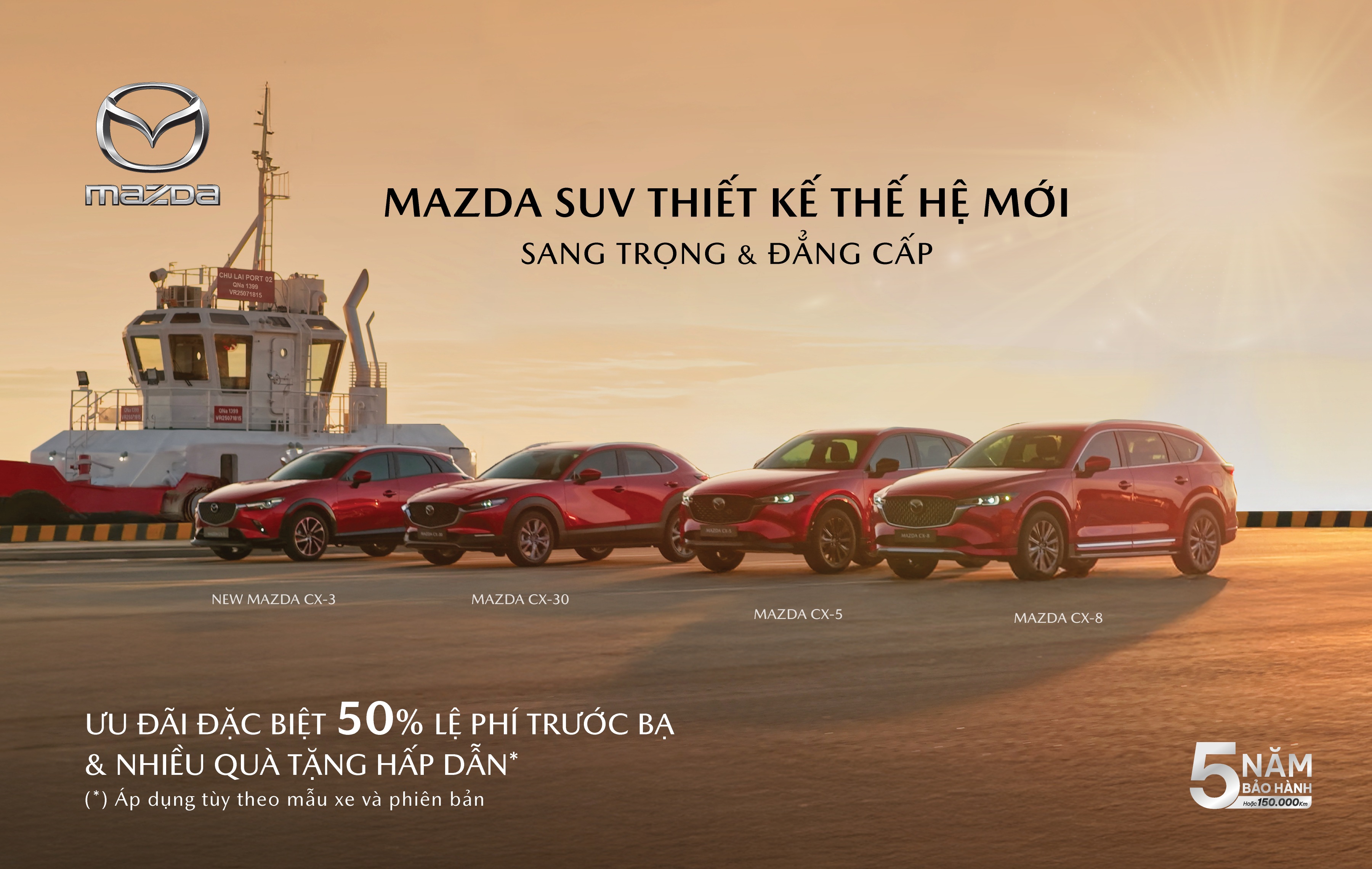Mazda Việt Nam áp dụng chương trình ưu đãi đặc biệt dành cho nhiều mẫu xe, trong đó có loạt mẫu SUV thiết kế thế hệ mới sang trọng và đẳng cấp dành cho khách hàng sở hữu xe tháng 6.